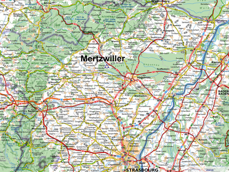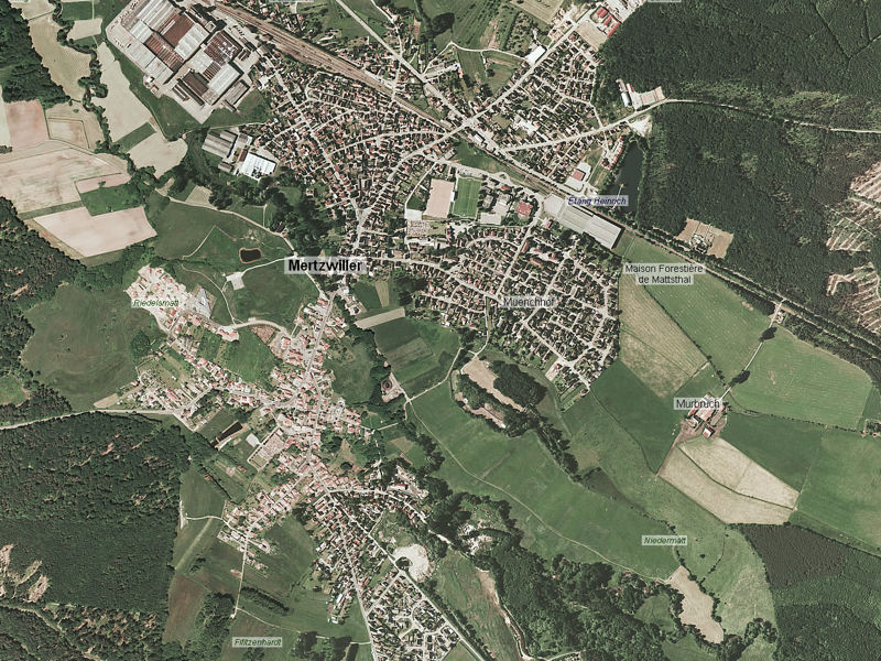 Situation géographique Mertzwiller est une commune Française située dans le Nord du Bas-Rhin en Alsace. Le village se situe à une quarantaine de kilomètres environ au nord de Strasbourg, et une dizaine de kilomètres à l'ouest de Haguenau. La commune est traversée par un cours d'eau, la Zinsel du Nord, qui coupe le village en deux. Elle a également la particularité d'être l'un des seuls villages entièrement entouré de forêt. En effet la forêt de Haguenau encercle littéralement la commune, cependant elle est nettement moins dense à la sortie du village vers Niederbronn. Cliquez sur les images pour les agrandir Au dernier recensement le village comptait 3546 habitants. Le territoire communal couvre la superficie de 696 hectares. L'altitude du village se situe entre 152 et 207 mètres. Histoire Les premières traces du village datent de l'époque romaine comme en attestent les reliefs de Mercure et Diane présents dans le mur de l'Eglise catholique. Mertzwiller est un ancien village impérial. Ce village de défrichement fut fondé par les moines de Neubourg. Son Eglise catholique date des années 1781-1785 par Salins, dit de Montfort. Elle fut agrandie au 20ème siècle. L'Eglise luthérienne date du début du 20ème siècle. Il existait également une ancienne synagogue dans l'actuelle rue du général de Gaulle. Malheuresement celle ci fut détruite durant la seconde guerre mondiale et il ne subsiste aujourd'hui que le cimetière israélite qui date du début des années 1800. A suivre... Armoiries Mertzwiller a la particularité de possèder deux blasons. Le premier est le blason actuel qui est venu remplacer l'ancien blason il y a quelques dizaines d'années.